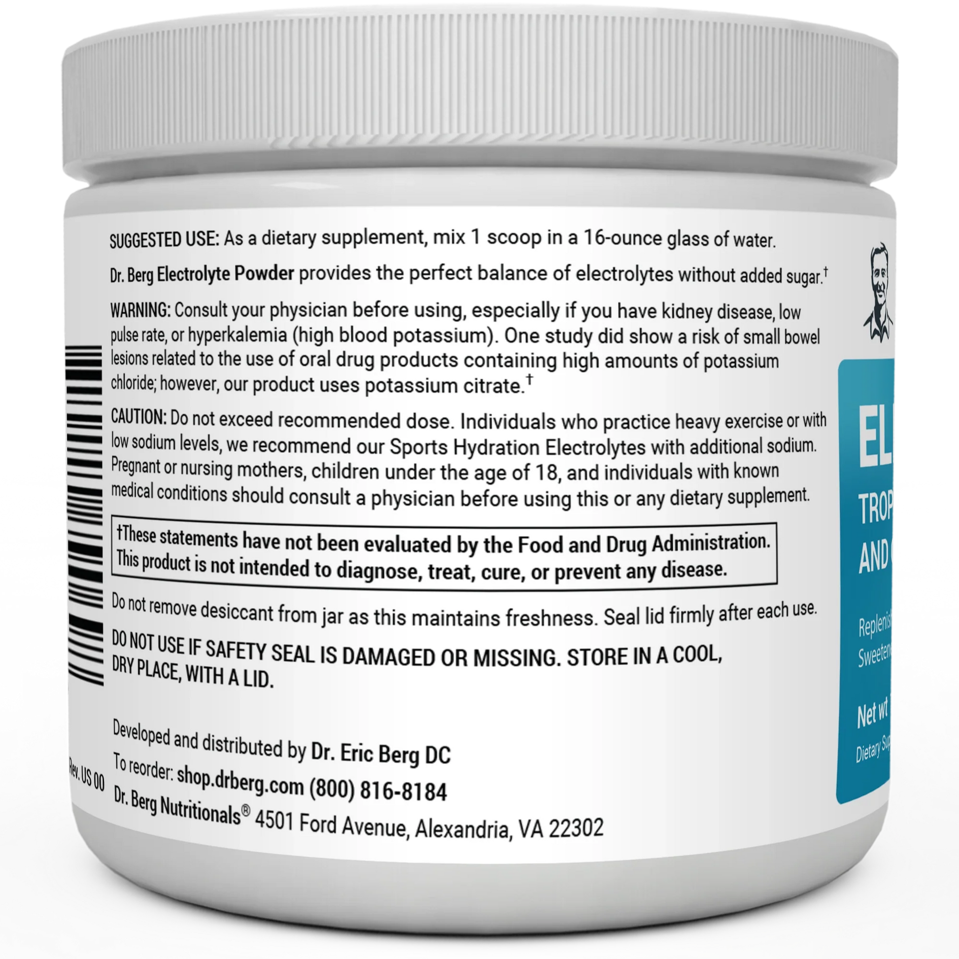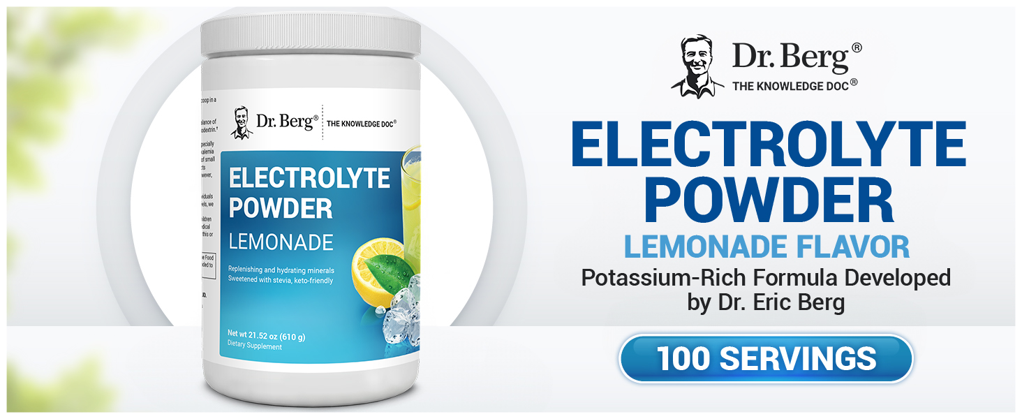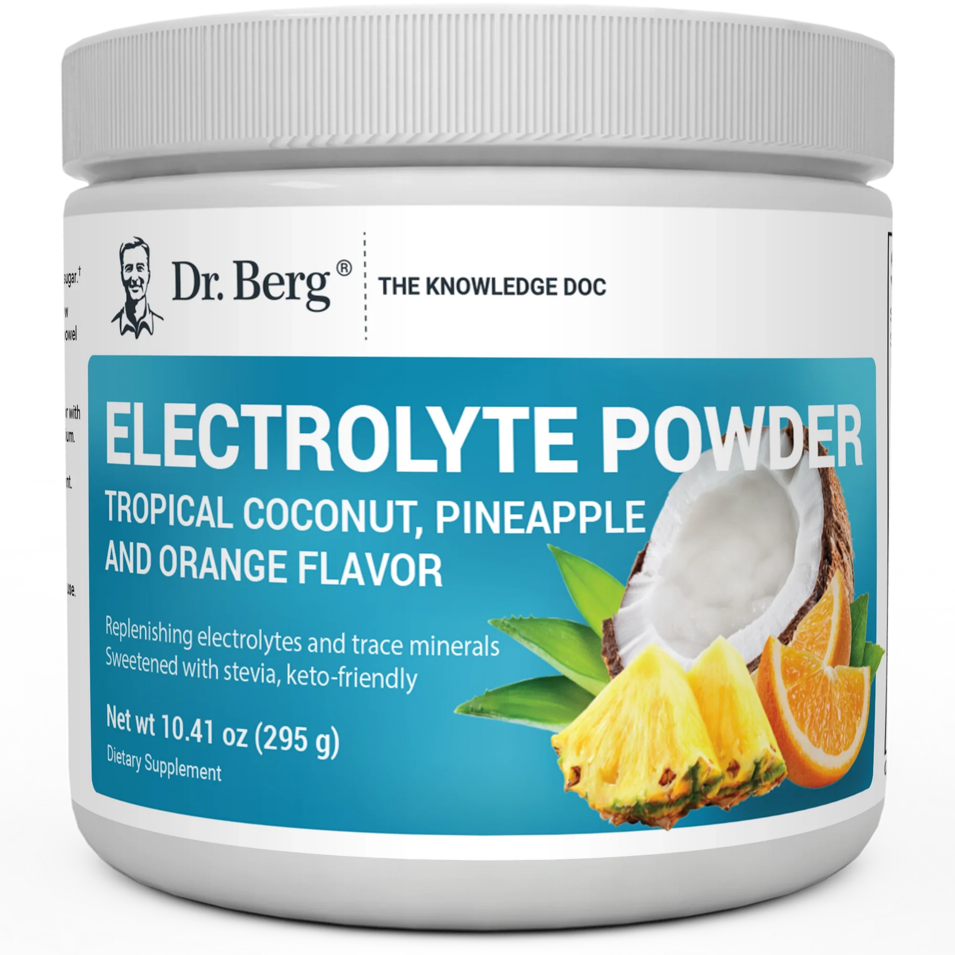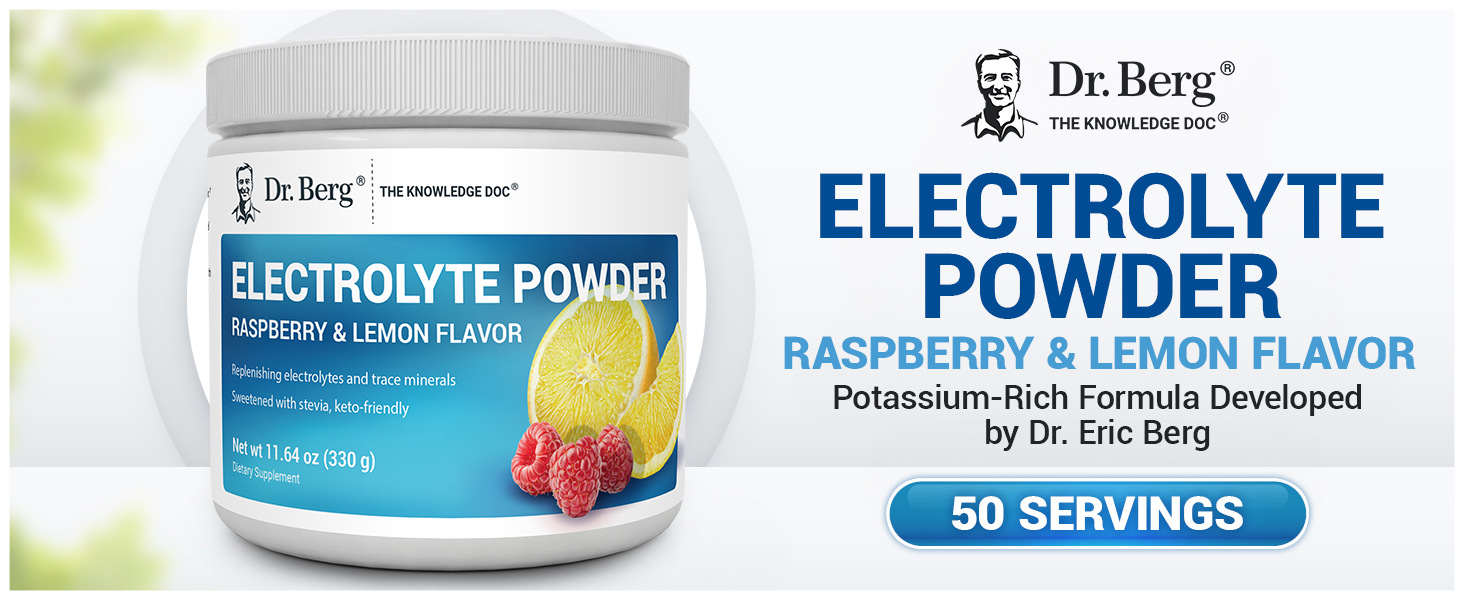 Dr. Berg electrolyte powder delivers a high-quality boost of essential electrolyte minerals, featuring an impressive 1000 mg of potassium per serving.