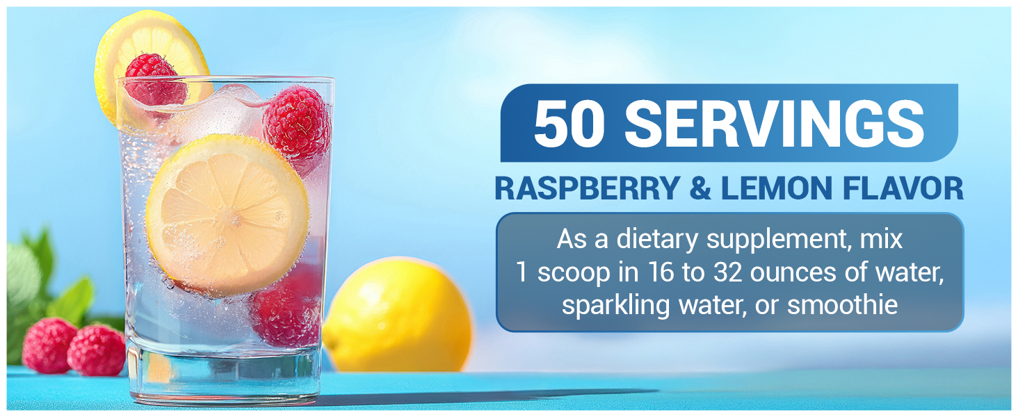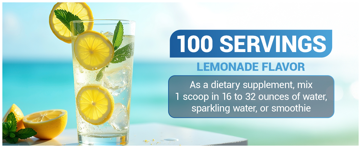 Each container supplies 50 or 100 servings of electrolytes. Simply mix one scoop of electrolyte powder with water and enjoy a refreshing and delicious electrolyte drink — with 9 different flavors to choose from.